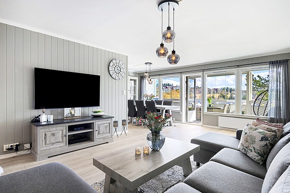 Moderne og lekker 4-R endeleilighet m/​ innglasset balkong | Høy 1. etg. | Garasje (EL) | Barnevennlig og sentralt