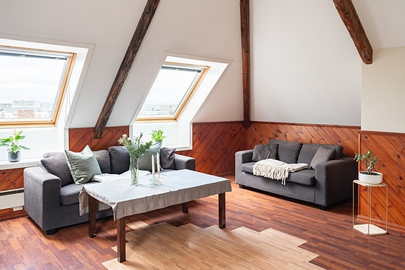 Flott 3-roms loftsleilighet med tilbaketrukket og skjermet beliggenhet på populære Møllenberg.