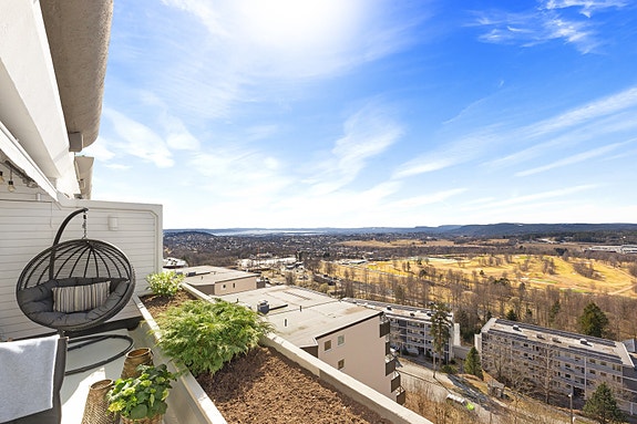Attraktiv 4-roms med 2 balkonger og fantastisk panoramautsikt. Garasjeplass m/lader og felles v.v.