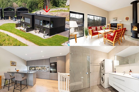 Nyere, påkostet og tiltalende vertikaldelt 2-mannsbolig med 4 soverom, 2 bad og garasje. Ny pris!