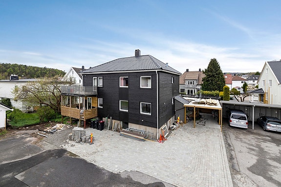 Hele boligen er renovert utvendig m/bla. ny drenering, etterisolert m/10 cm isolasjon + ny kledning, samt nye 3 lags vinduer og dører på hele boligen. 2 lags vinduer i u.etg.