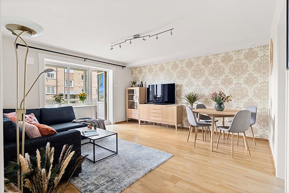 Gjennomgående 3-roms med god planløsning! Sydvendt innglasset balkong på 8 m² - Fyring inkludert - Populært område!