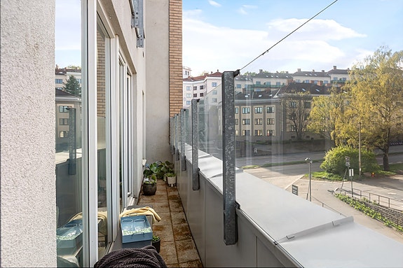- Fra stuen har du utgang til rømningsbalkong/brannbalkong