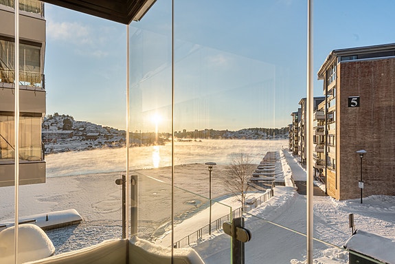 Fantastisk leilighet i front med innglasset balkong og praktfull utsikt. 2 bad! Garasje medfølger!