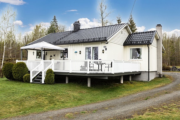 Trivelig og velholdt enebolig med alt på en flate - Fin hage og uteplass - Garasje - Naturskjønn beliggenhet!