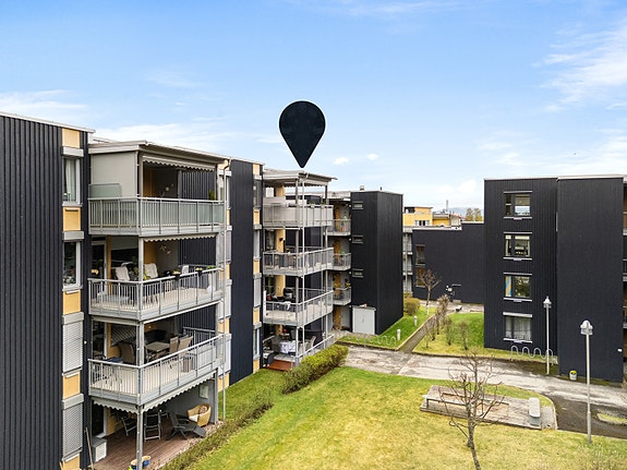 Leiligheten ligger i 4. etasje og inneholder en åpen stue- og kjøkkenløsning, to soverom, bad og bod. Fra stuen er det utgang til solrik balkong. Leiligheten er lettstelt og har store vindusflater som sørger for luftige oppholdsrom. Parkering i felles garasjeanlegg. Leiligheten disponerer også en utvendig bod på ca 6 m².
