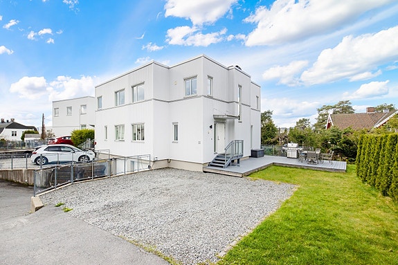 Fin fjordutsikt og meget gode solforhold med attraktiv beliggenhet på Sogsti. Her har du meget kort vei til flotte badestrender, Sogsti skole og Drøbak sentrum for å nevne noe. Praktisk tomannsbolig med tidsmessige farger og god standard. Stort og pent bad med frittstående badekar og dusj i forbindelse med soverommene i 1. etasje. Stor og flott stue med åpen kjøkkenløsning og direkte utgang til balkong med flott fjordutsikt. Pent kjøkken med alle hvitevarer integrert. Flott vaskerom med masse skap og benkeplass i tillegg til dusj og wc. Integrert garasje med aut. portåpner og EL-bil lader. Beliggende innerst på tunet med asfaltert adkomst med varmekabler i veien. Egen stor biloppstillingsplass, markterrasse og hage med gressplen. Barnevennlig og trygt.