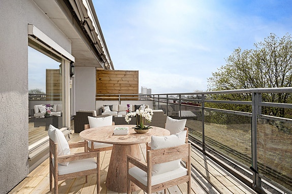 Fra leiligheten og terrassen er det herlig utsikt og minimalt med innsyn.