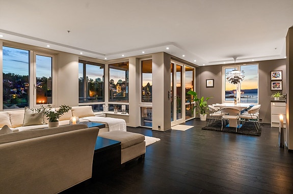 Leiligheten byr på en romslig og åpen planløsning med store vindusflater som slipper inn rikelig med naturlig lys og gir deg panoramautsikt mot Trondheimsfjorden. Nyt solfylte dager og storslåtte solnedganger fra den private, sørvest-vendte terrassen perfekt for både avslapning og sosiale sammenkomster.