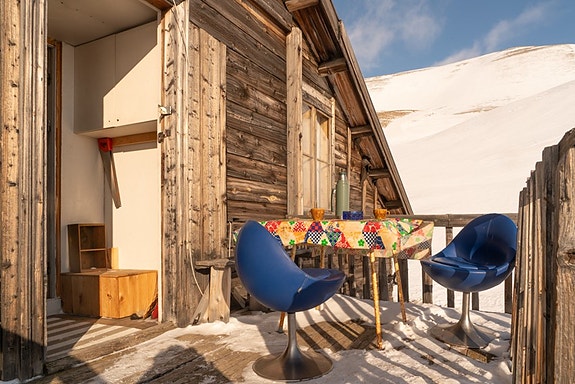 Fra solrik veranda har du flott utsikt mot Adventfjorden, Adventdalen og mot Longyearbyen.