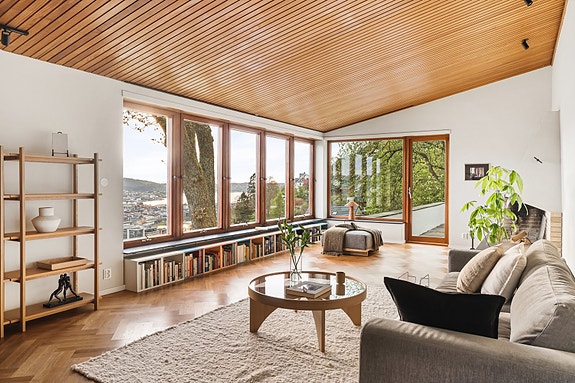 Arkitekttegnet funkisvilla fra 1960, tegnet av Aall & Løkeland - totalrenovert med respekt for originale kvaliteter. Boligen kombinerer tidløs eleganse med moderne komfort, og ligger usjenert til i Fjellveien med fantastisk utsikt, solrike uteplasser og nærhet til både natur og sentrum. Hoveddelen er på 213 kvm over to/tre plan, med god flyt og eksklusive materialvalg. I tillegg medfølger en utleiedel på 37 kvm - perfekt for inntekt eller gjester.