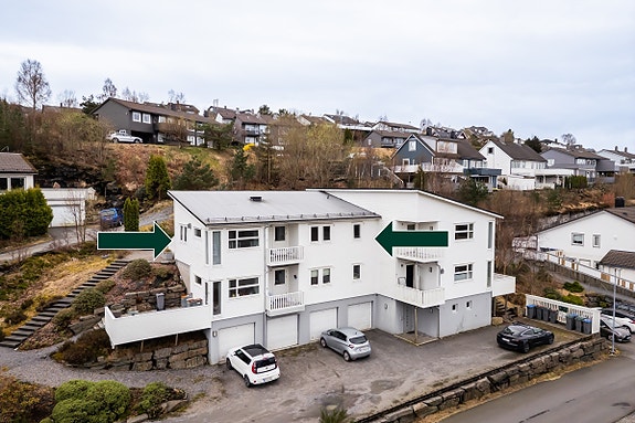 Meget pen leilighet i toppetasjen av bygget. Gjennomgående god og moderne standard. Egen garasje på 20 m² med el. bil lader og elektrisk port åpner. Ekstern sportsbod. To solrike terrasser på henholdsvis 4,3 m² og 23m². Leiligheten inneholder: