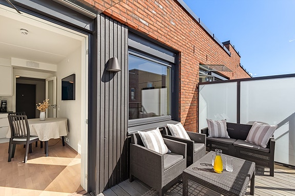 - Leiligheten har tilgang til flott takterrasse og hyggelig opparbeidet gårdsrom