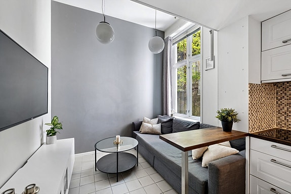 En luftig og arealeffektiv 1-roms leilighet med gjennomgående god standard, generøs takhøyde og svært sentral beliggenhet. Dette er en perfekt inngangsbillett for deg som skal inn på boligmarkedet.