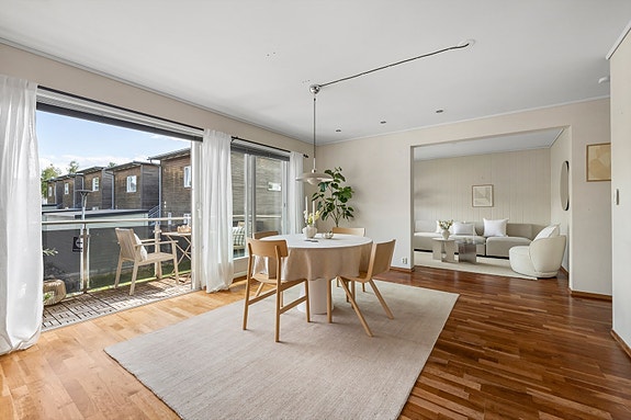 Vannbåren varme, internett og tv, nedbetaling av andel fellesgjeld og vaktmestertjenester er inkludert i felleskostnadene.
