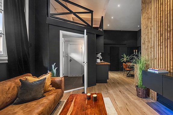 Råtøff, moderne og innholdsrik 2-roms eierleilighet m/bl.a. stor takhøyde og hems | egen p-plass i lukket atrium.