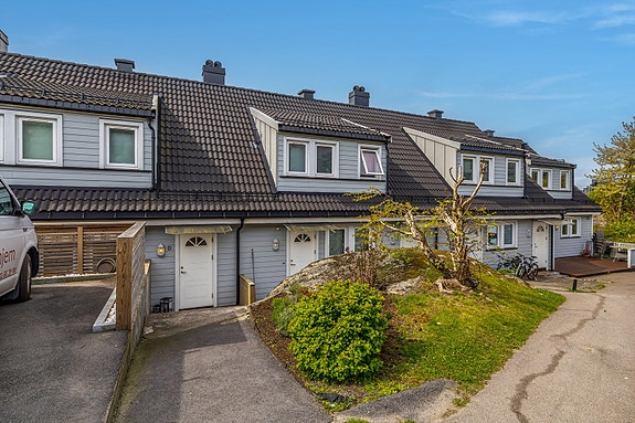 Velkommen til Bekkestien 18 D leiligheten har egen inngang, ligger høyt med flott utsikt over omkringliggende områder. Foto: Karl Filip Kronstad