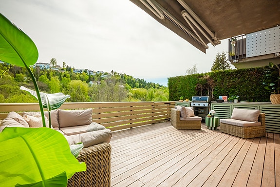 Sjelden 2-roms rett ved Alnaelva | Fantastisk sydvendt terrasse på hele 27 kvm | Garasjeplass m/lader!