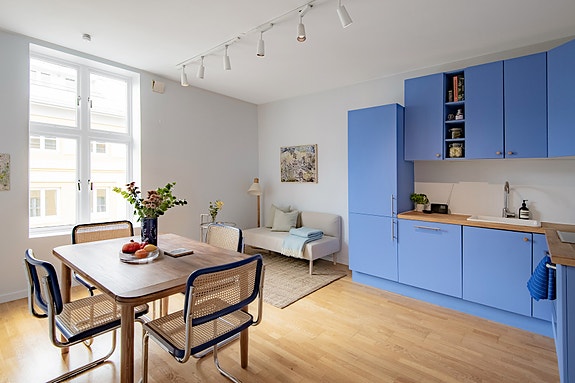 Velkommen til en klassisk og gjennomgående 2-roms selveierleilighet beliggende høyt i byggets 1. etasje (2,5m til bakken fra vindu). Boligen inneholder en romslig stue, separat kjøkken med inkluderte hvitevarer, soverom vendt mot rolig, indre gårdsrom og flislagt baderom med gulvvarme.