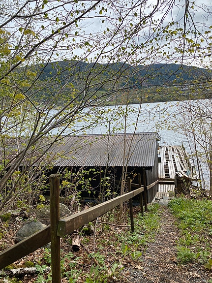 Nedre hengsle på den ene siden av naustporten er knekt og må skiftes.