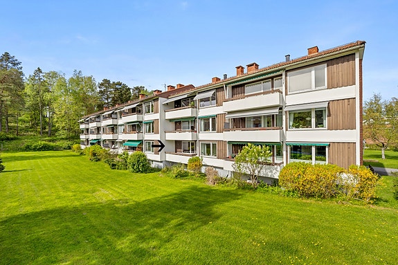 GJENNOMGÅENDE OG LYS 4-ROMS I GRØNNE OMGIVELSER VED SJØEN - PEIS - BALKONG - KORT VEI TIL SKOLER/BARNEHAGER/OFF.KOM.