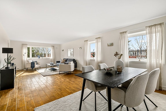 Tiltalende, praktisk og romslig leilighet i et etablert og velholdt sameie som i 2023/24 renoverte fasader, nye balkonger, vinduer, balkongdør, etterisolering og fasadeplater. Leiligheten ligger syd/vestvendt. Entré og gang, stue og spisestue, kjøkken, bad/vaskerom, toalettrom, 2 soverom og bod. Del av den store stua har vært soverom og kan med letthet tilbakeføres til soverom. Utgang fra stue og kjøkken til 11 m2 overbygd og innglasset balkong. De fleste overflater er pusset opp i 2024/25 av fagfolk, samt ny innredning på baderom og toalettrom. Felleskostnadene inkluderer det meste (også renter og avdrag andel fellesgjeld) bortsett fra eget strømforbruk. Gangavstand til sentrum. Matbutikk, busstoppested og treningssenter ca 450 meter fra leiligheten.