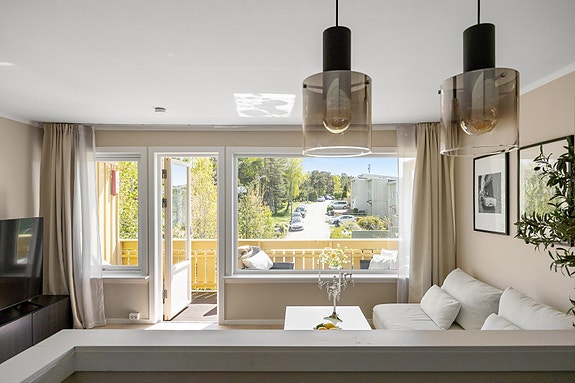 På Gressvik, 3 km vest for Fredrikstad sentrum, venter Hurrødåsen 2. Leiligheten ligger på en liten høyde mellom barneskolen, idrettshallen og kirken. Gressvik er som en komplett småby med alt du trenger i hverdagen. Herfra er det kort avstand til ferge, badeplasser og turstier. Borettslagsleiligheten ligger i en gul blokk fra 1972. Nabolaget er svært hyggelig og stille. Fra sin solrike balkong i 4. etasje har du god utsikt over tretoppene både sørover og vestover. I kjelleren er det bod og parkering foregår på asfalterte plasser. Blokken er godt vedlikeholdt; alle vinduer ble byttet i 2012-14, og leiligheten selv har gjennomgått en stor modernisering med bad fra 2019 og kjøkken fra 2017. Alle flater har blitt pusset opp, og gulvene har lys parkett.