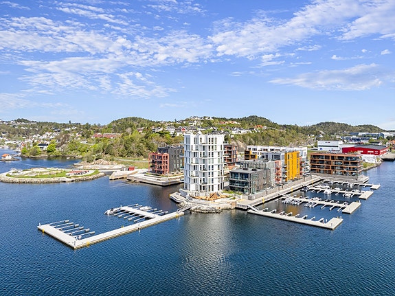 En av Arendals mest spektakulære leiligheter med fantastisk beliggenhet - Øverst og ytterst på piren ved "Lillepollen".