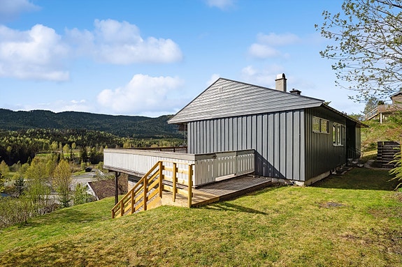 Eneboligen med flott beliggenhet i et etablert boligområde med gode solforhold og flott utsikt over landlige omgivelser. Eiendommen ligger i en blindvei, og har en sentral beliggenhet i Svene. Det er ca. 5 km til Lampeland med blant annet butikk, serveringssted, skole, barnehage,og ca 15 km til Kongsberg med alle byens fasiliteter.