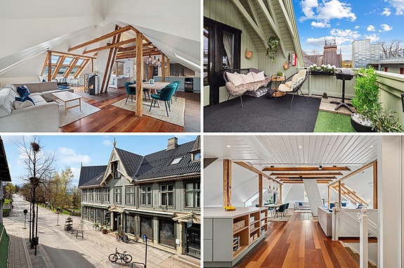 Leiligheten er lys, tiltalende og er unik med synlige bjelker i stue og kjøkken med skrånende tak. En romslig stue med store vindusflater, 4 gode soverom, pent kjøkken fra Strai og et lyst og pent bad.