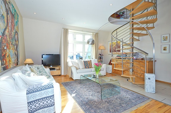 Innholdsrik gjennomgående loftsleilighet over 2 plan beliggende i 5. etasje, med en arealeffektiv planløsning. Med god takhøyde og store vinduer som slipper inn godt med lys fremstår boligen gjennomgående som lys og luftig. Kombinert med et meget attraktivt boligområde er dette med på å gjøre eiendommen til noe av det bedre området har å tilby.