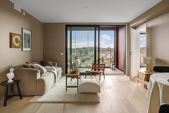 Smakfull 3-roms med god standard i byens mest spennende nybygg. Suveren utsikt fra store vinduer og balkong i 9. etasje.
