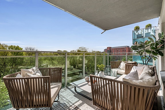 Vakkert skue fra solrik balkong, mens du hører Akerselvens brus!