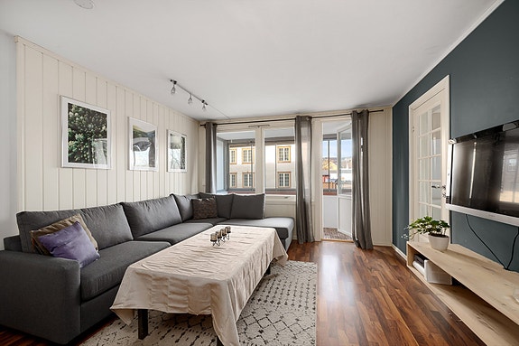 Lys og moderne 3-roms sentrumsleilighet med to boder og innglasset balkong.