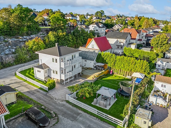 Eneboligen inneholder bl.a. kjøkken og stue i delvis åpen løsning, tre soverom og baderom. Det er flotte uteplasser og pent opparbeidet tomt med stor hage for lek og moro. Eiendommen ligger sentralt og tilbaketrukket i et veletablert og barnevennlig område.