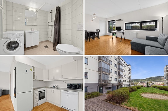 Velholdt 2-roms | Heis, p-plass | Innglasset balkong med utsikt mot elva | "Nærhet til alt" | IN-ordning | Sentralfyr