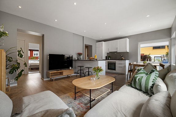 ZMegleren har gleden av å ønske velkommen til Vognstølen 10 A - en lekker 3-roms leilighet som kombinerer moderne komfort med en sentral beliggenhet. Leiligheten ble omfattende oppgradert i 2019. Alle overflater ble fornyet med moderne og tidløse materialvalg. Nytt og flott IKEA kjøkken med integrerte hvitevarer samt helfliset bad med rør-i-rør system + nytt elektrisk anlegg med utstrakt bruk av downlights.
