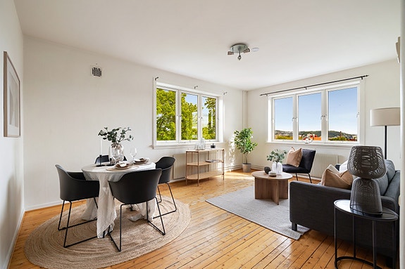 Lys 3-roms hjørneleilighet i attraktivt område med herlig utsyn - Tilbaketrukket - Fyring/VV - Oppussingsobjekt
