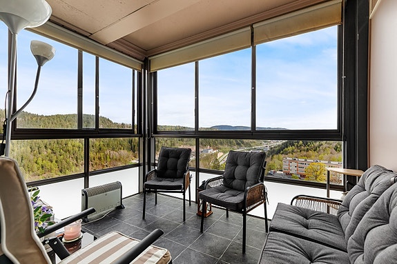Leiligheten ligger i 10. etasje og byr på en imponerende utsikt kombinert med svært gode solforhold. Med tre soverom og to innglassede balkonger, har du rikelig med plass til både hverdag og sosiale sammenkomster. Her bor du luftig og skjermet, samtidig som du har kort vei til natur, skoler og alle nødvendige fasiliteter.