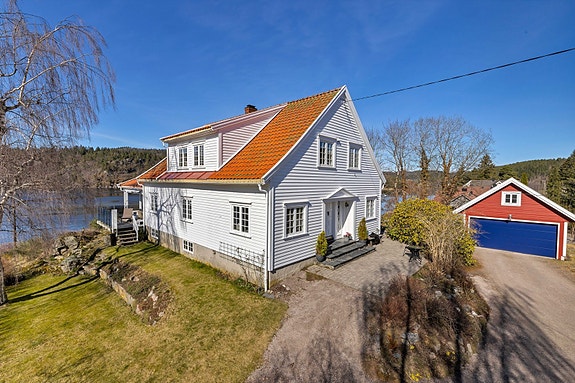 En fantastisk plass som bader i sol. Det er flott utsikt over Venneslafjorden og heiene rundt. Her kan du fiske, bade, ro eller padle og se på fuglelivet. Eiendommen har nesten 4 mål med tomt hvor store deler er flott naturtomt samt skråner ned mot Otra med egen strandlinje. Eiendommen er et eldre hus fra 1939 hvor det er et tilbygg fra 1970 samt garasje fra 2002.