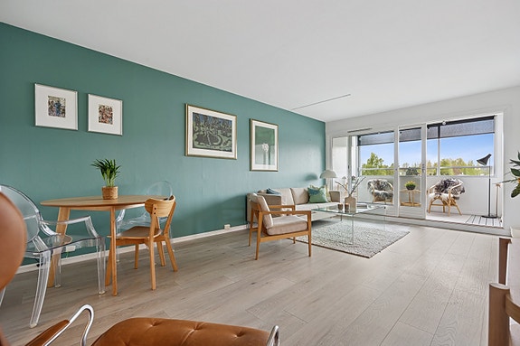 Romslig 3-roms leilighet i 4. etasje med god standard. To solrike balkonger. Egen p-plass i garasje. Heis. Sentralt.