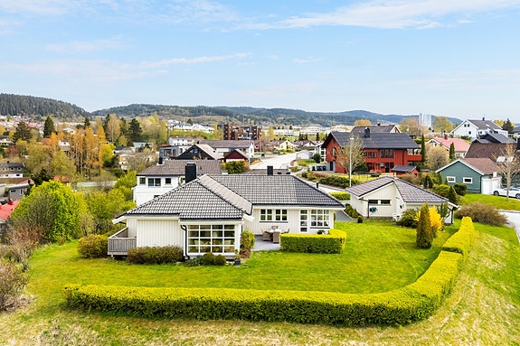 Boligen har usedvanlig flott beliggenhet i gaten, på et høydedrag med vidstrakt utsikt. Den er velholdt og pen, og bærer preg av kvalitet og godt vedlikehold. Foruten en planløsning med god atmosfære har huset en ren og gjennomført stil, med fine detaljer i interiøret. Boligen er ført i pennen av arkitekt Kjell Kristiansen. Oppholdssonen i 1.etg. har store vindusflater med gjennomlys, stuen har flere soner og kjøkkenet en romslig spiseplass. Et blikkfang av en peis binder stuen sammen, og høyt skråtak i stua gir rommet både stil og særpreg. Huset har 4 soverom, kjellerstue med egen inngang som gir rom for å trekke seg tilbake og dobbelgarasje