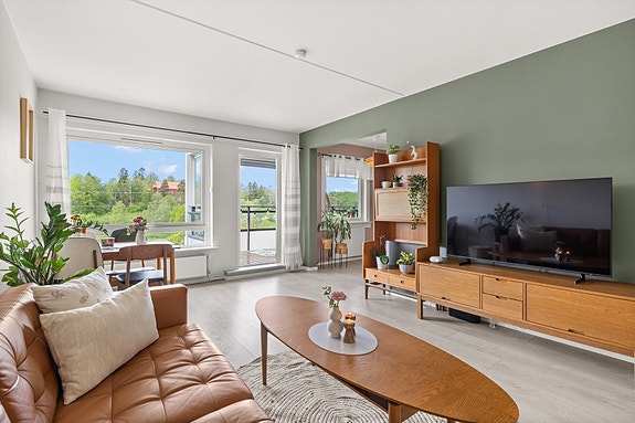 Delikat og solrik 4-roms topp- og endeleilighet|Vestv.balkong m/flott & frodig utsyn| V.v & fyring inkl|Kjøkken fra 2020