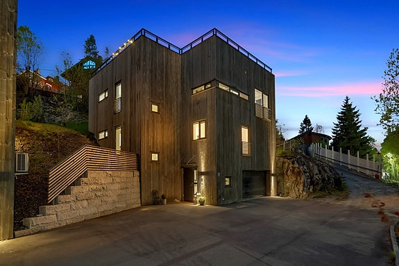 En rålekker arkitekttegnet funkisbolig over tre plan fra 2012 med garasje innebygget i boligen. Boligens 226 m² byr på en svært god og romslig planløsning, helt ypperlig for småbarnsfamilien! Eiendommen ligger vestvendt med gode solforhold. Her bor man i et meget attraktiv og veletablert villaområde på Vallerud i Lørenskog kommune. Barnevennlig med kun 3-5 minutters gange til skoler (Rasta og Benterud) og barnehager (på Vallerud ligger også Rudolf Steiner skolen).