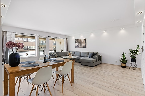 Pen og oppgradert 5-roms m/to balkonger på 7 og 10 m²! Garasjeplass - Varmtvann inkl. - Populær beliggenhet!