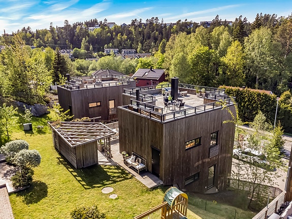 232 herlige kvadratmeter fordelt over tre plan med garasje integrert i u. etg. (m/adkomst rett inn i boligen). God plass til hele familien med bl.a. 4 soverom, 2 stuer og 2 bad. På toppen troner takterrasse på hele 78 m² med sol fra morgen til kveld. I tillegg er det en flott, solrik og lun markterrasse på 45 m².