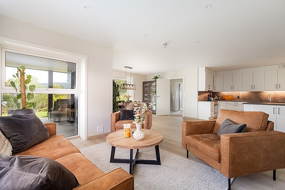 Sjeldent stor leilighet i moderne og gjennomført utførelse. Leilighetsbygget er oppført i ca. 2023 hvor boligen ligger i byggets underetasje. Her har leiligheten en svært god planløsning med romslige rom. Plass i carport medfølger hvor det er el-bil lader.