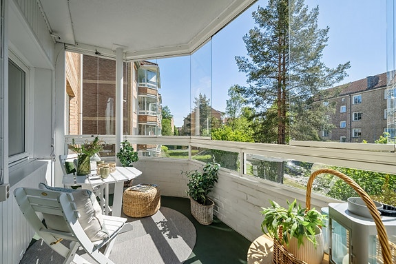 9 kvm innglasset balkong, lag din egen lune oase, her kan du nyte både solrike dager og lune kvelder.