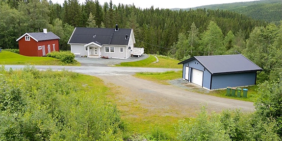 Huset ligger på høyre side umiddelbart etter å ha tatt veien mot Stordalen