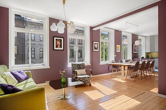 En klassisk og lys 3-roms leilighet som har en god miks av moderne og sjarmerende løsninger. Leiligheten har en populær beliggenhet med klassisk bebyggelse og oppleves som åpen og lys. Her får du flotte detaljer som originale tregulv, generøs takhøyde og en fantastisk vindusrekke i stuen. Dette er boligen for deg som jakter det klassiske med rolig beliggenhet og gangsavstand til "alt"